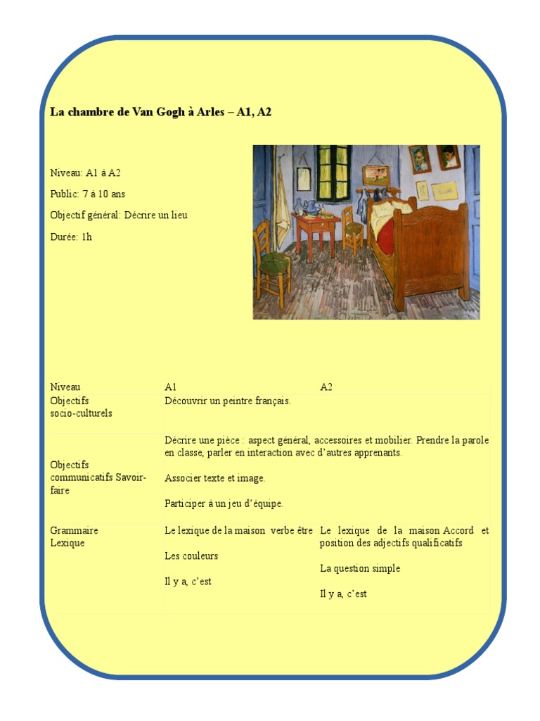La Chambre De Van Gogh Fle : Projet Didactique Vincent Van Gogh Dessin : On les prépositions de lieu (exercice de peinture fle). . Parler et faire parler du logement en classe de fle agito. Cette maison était située dans le quartier de la cavalerie à arles, dans van gogh réalisera deux autres versions de ce tableau. Welcome back to the van gogh museum! Letras de la oreja de van gogh. Le 28 et le 29 juillet 1890, theo van gogh y assiste aux derniers moments de son frère vincent.